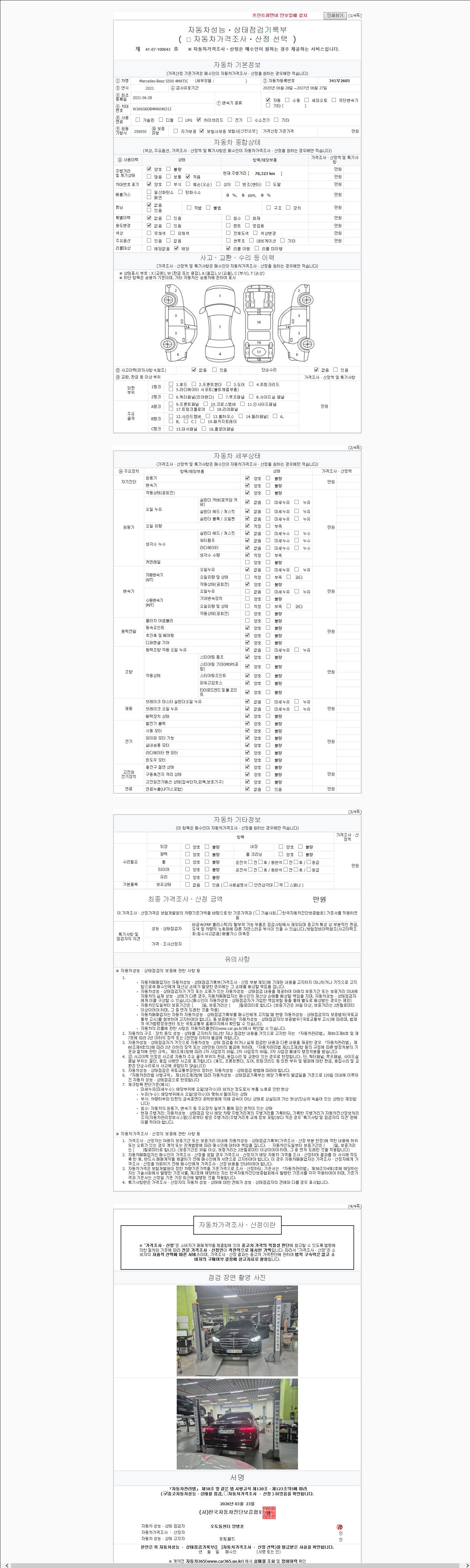 | 주행거리 | 78,323 km | 차량번호 | 341부2605 | 사고유무 | 성능기록부 참조 | 제시번호 | 제 2147483647 호 |