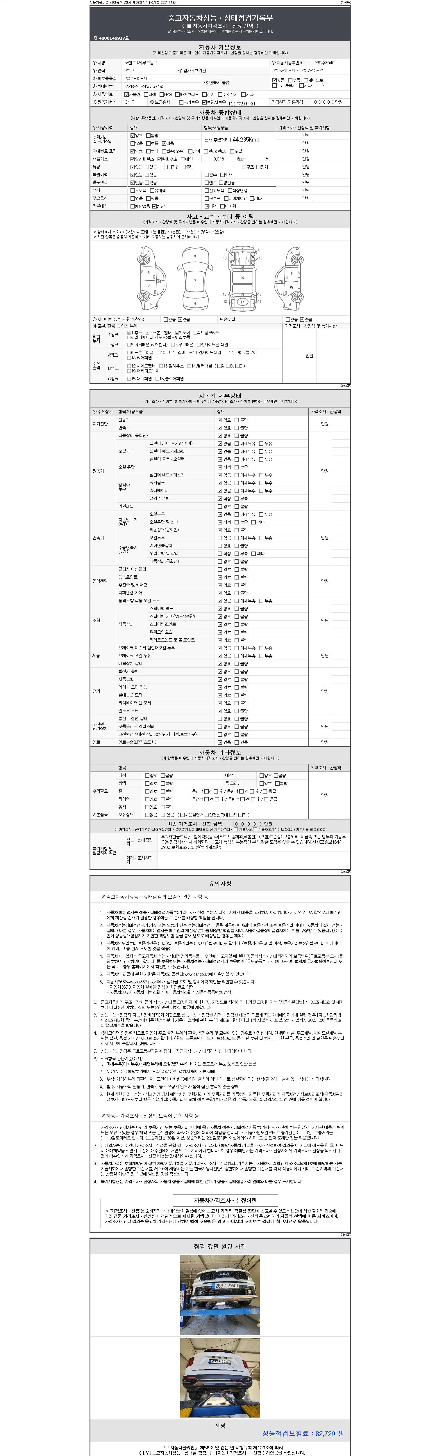 | 주행거리 | 44,219 km | 차량번호 | 289수3940 | 사고유무 | 성능기록부 참조 | 제시번호 | 제 2147483647 호 |