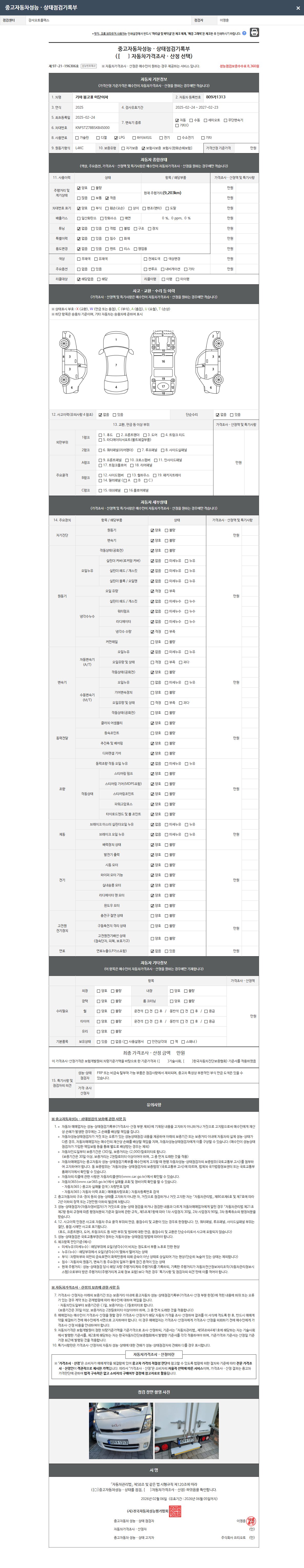 - 2. 차량 등록증이나 성능점검지 등을 상담자에게 요청및 확인하시고 사전에 미리 점검 하시기를 권유드립니다.