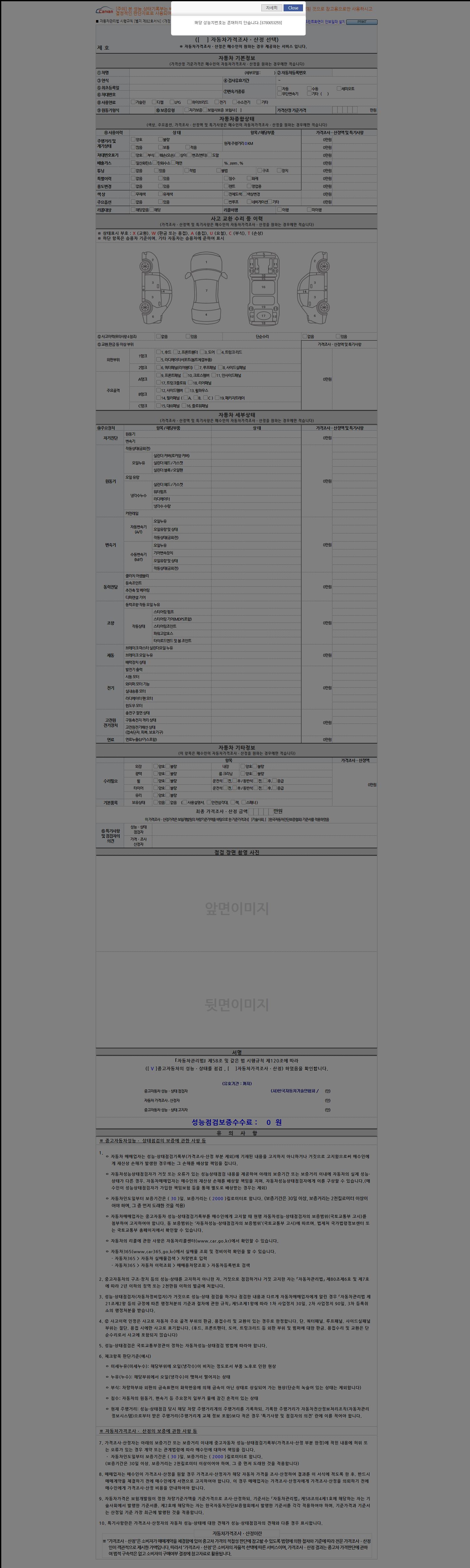 - 2. 차량 등록증이나 성능점검지 등을 상담자에게 요청및 확인하시고 사전에 미리 점검 하시기를 권유드립니다.