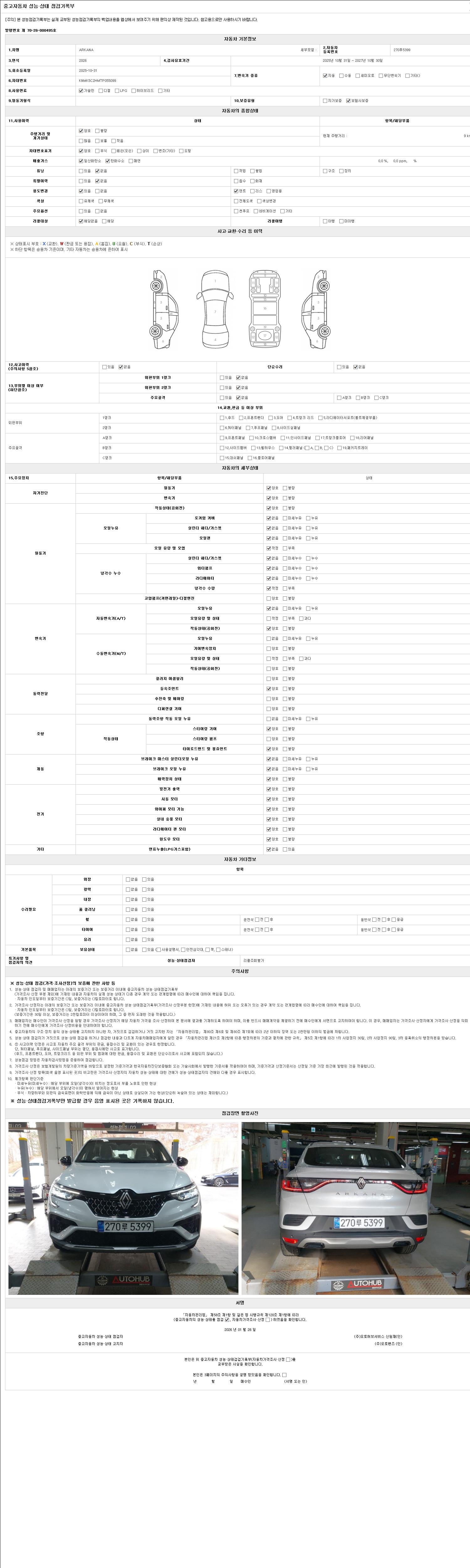 - 2. 차량 등록증이나 성능점검지 등을 상담자에게 요청및 확인하시고 사전에 미리 점검 하시기를 권유드립니다.