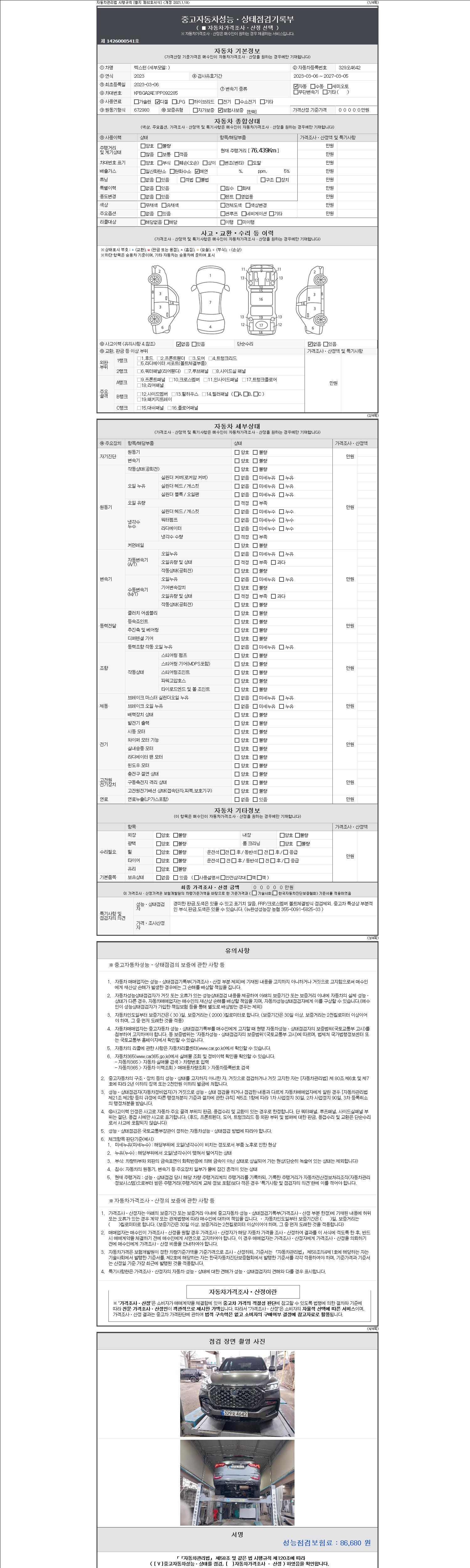 | 주행거리 | 76,439 km | 차량번호 | 329오4642 | 사고유무 | 성능기록부 참조 | 제시번호 | 제 2147483647 호 |